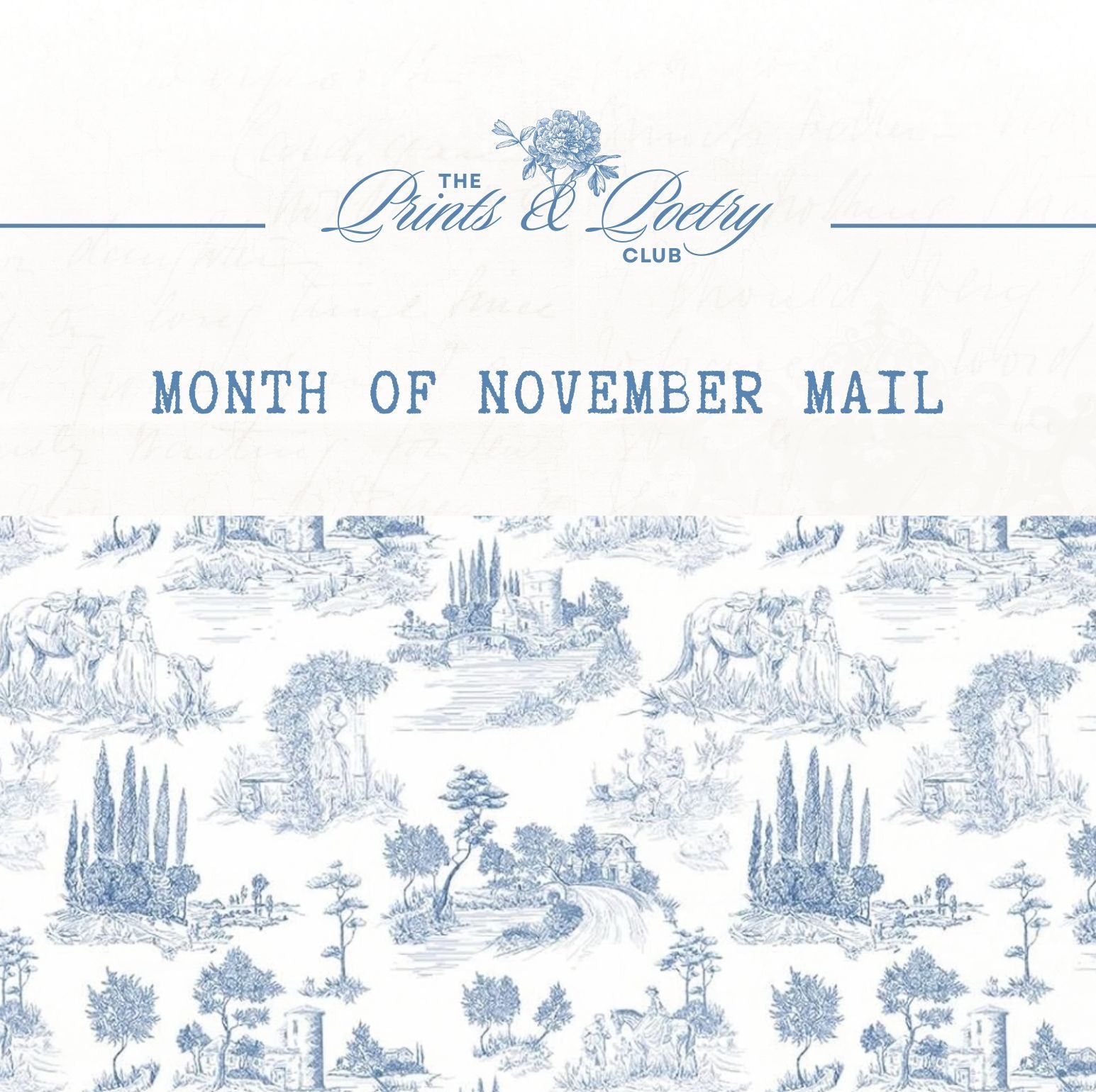DISCLAIMER: The art print and poetry piece pictured here are NOT this month's mail. Monthly mail is ALWAYS a surprise!